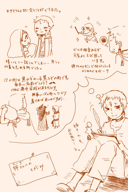 見習いの男の子達って中々集まっているイメージがなかったので、シマムラさん宅で漫画を拝見した際に、ああ、こんな感じもありなんだ!と、思い、ついつい描いてしまいました。